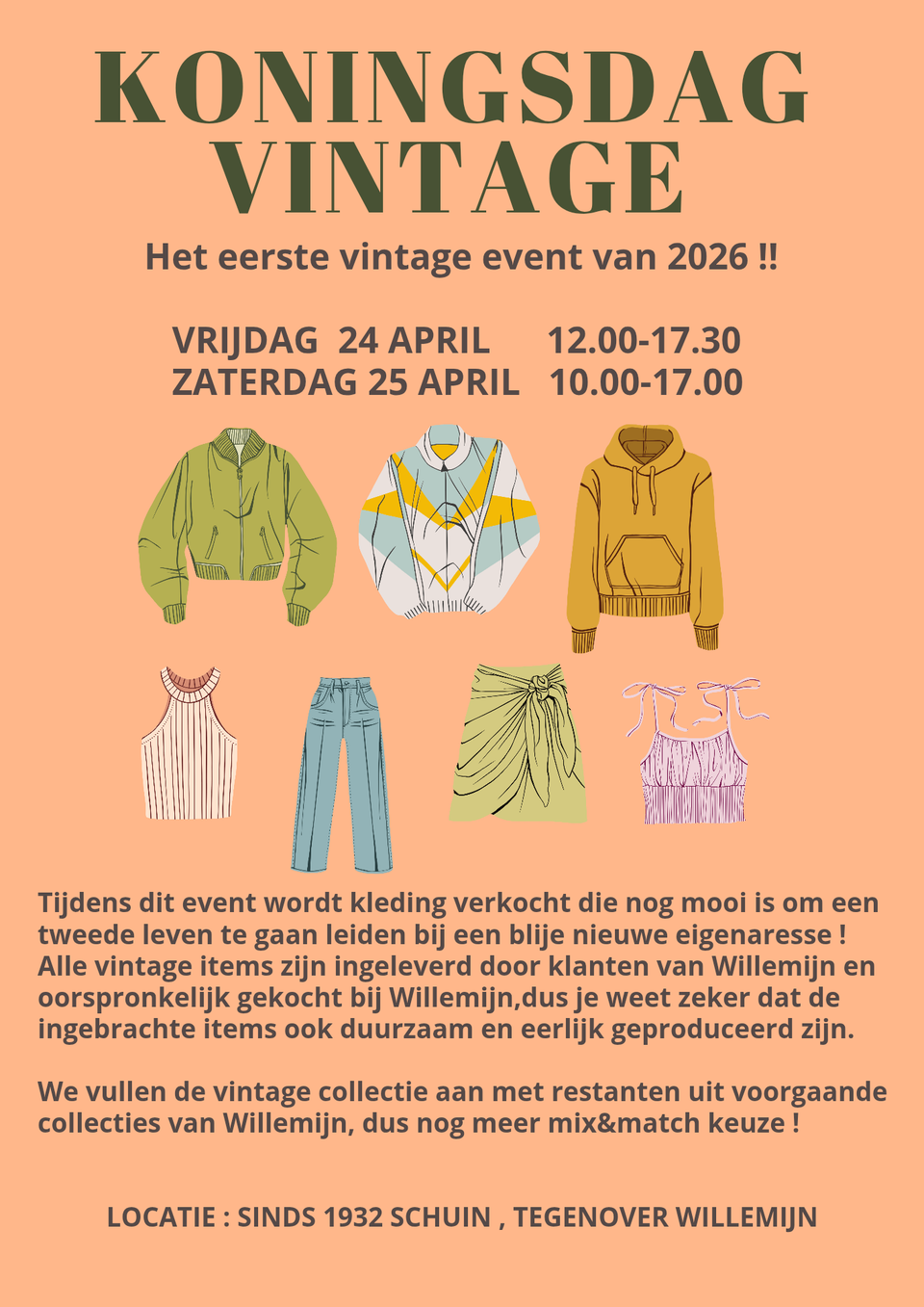 Het eerste Vintage&Outlet event van Willemijn dit jaar, bekend en geliefd bij velen. Ook jij bent welkom!