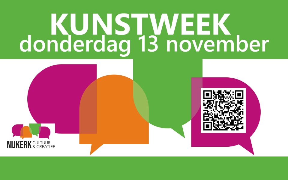 De KUNSTWEEK staat weer bol van de activiteiten. Lezingen en films, concerten, workshops, exposities en een verkiezing. In Nijkerk draait de vierde editie van KunstLicht. Hoevelaken heeft een nieuw project met WoordKunst. Flyers bij de bibliotheken, gemeenteloketten, en boekhandels e.a. en meer info achter de QR code.