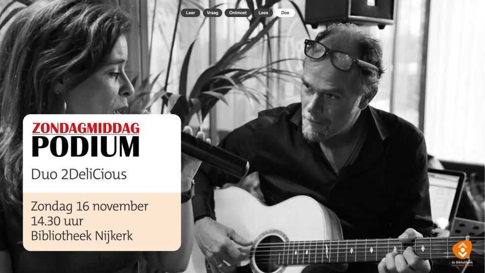 Zondagmiddag krijgt een bijzondere sfeer met Duo 2DeliCious, Nathalie D’Alessandro en Michael van Kolfschooten. Een muzikaal duo dat je meeneemt in een breed palet aan stijlen — van intieme luisterliedjes en jazzy standaards tot swingende disco hits en meeslepende pop.