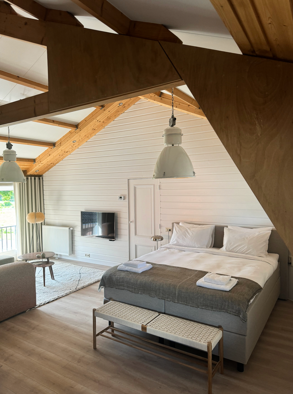 Onze knusse B&B is te vinden in Nijkerkerveen, een dorp dat samen met Hoevelaken bij de gemeente Nijkerk hoort. De B&B is gelegen in een prachtige omgeving in het buitengebied en is omringd door weilanden en bossen. Het is gelegen aan de rand van de Veluwe waar een bezoek aan onze mooie stad Nijkerk en dorpen zoals Spakenburg en Harderwijk de moeite waard zijn om te bezoeken. In de omgeving zijn veel wandel- en fietsroutes o.a. langs het Veluwemeer waar je door de Arkemheenpolder kunt fietsen. De B&B bevindt zich tegenover ons woonhuis met een eigen ingang, hal, badkamer en op de bovenverdieping bereik je de slaapkamer via een trap. Deze is ruim opgezet met een groot tweepersoons boxspring, sfeervol zitgedeelte met SmartTV en een aanrecht met een koelkast, Nespresso en een waterkoker. Vanuit de kamer heb je een mooi uitzicht. 's Morgens brengen we op het afgesproken tijdstip het ontbijt. Jullie zijn van harte welkom in onze B&B!